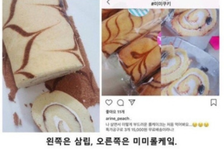 또, 쿠키 말고 다른 제품들은 수제라고 강조했는데요. 역시 사실이 아닌 것으로 드러났습니다. 미미쿠키의 롤케이크가 '삼립'의 클래식 롤케이크와 똑같았던 거죠.