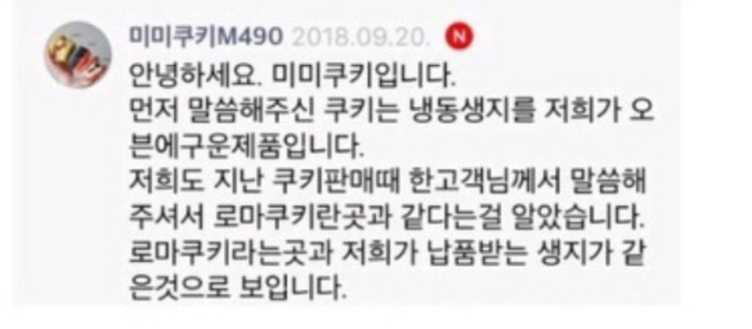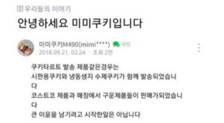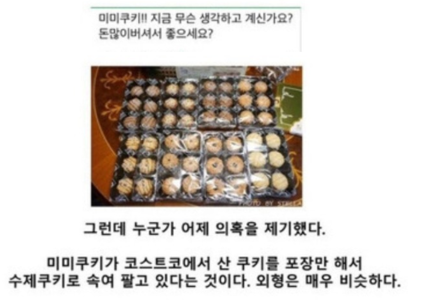 그런데 최근 한 회원이 "미미쿠키가 코스트코 쿠키를 포장만 해서 속여 팔고 있다"는 의혹을 제기했습니다.