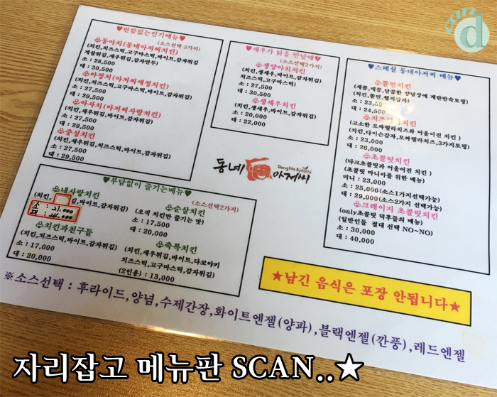 얼른 자리를 잡고 메뉴판 스캔을 시작했습니다.