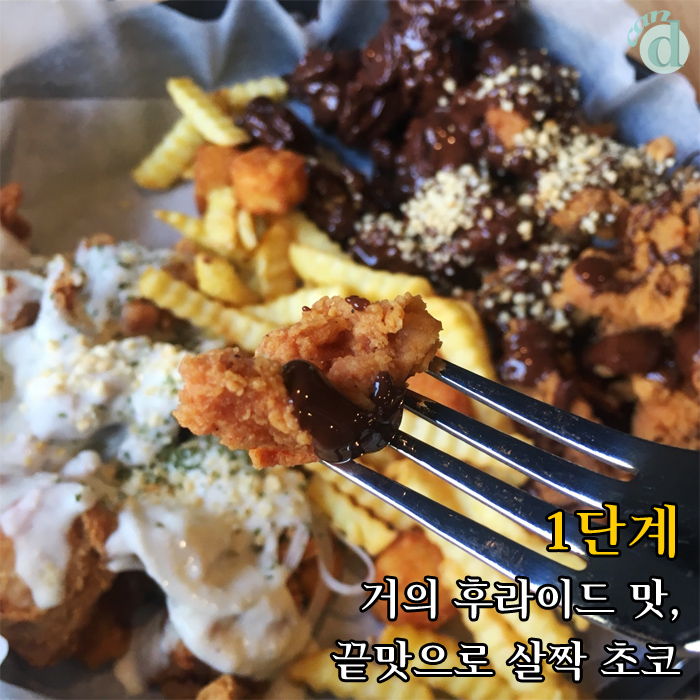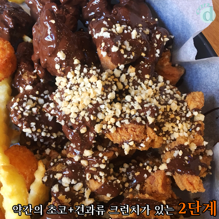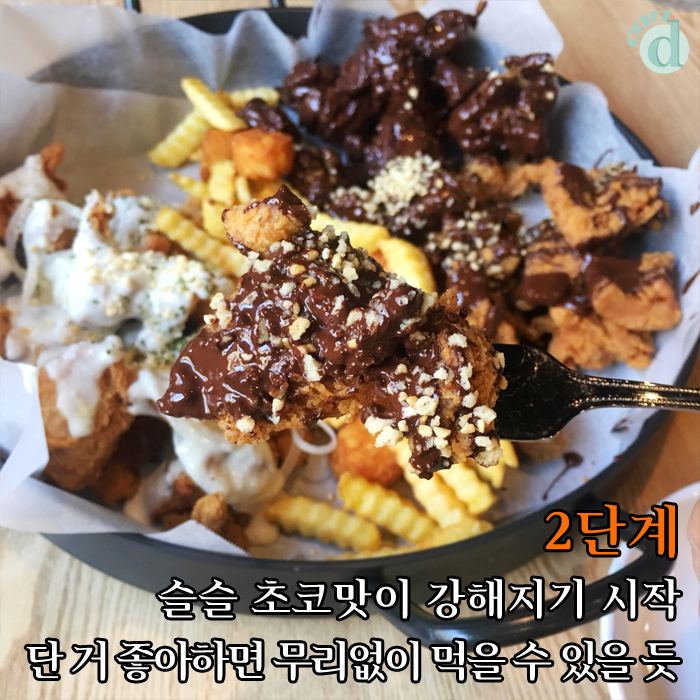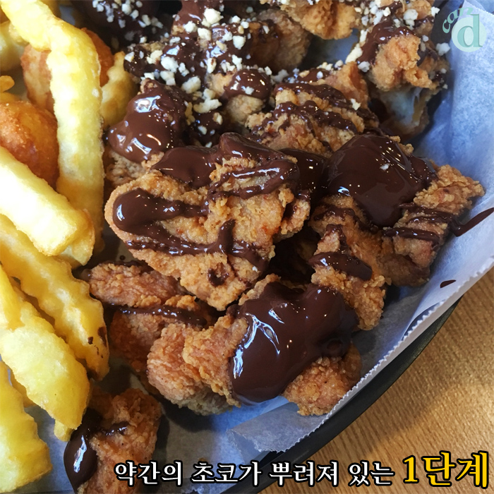 1단계에는 후라이드 치킨에 약간의 초코가 뿌려져 있습니다.