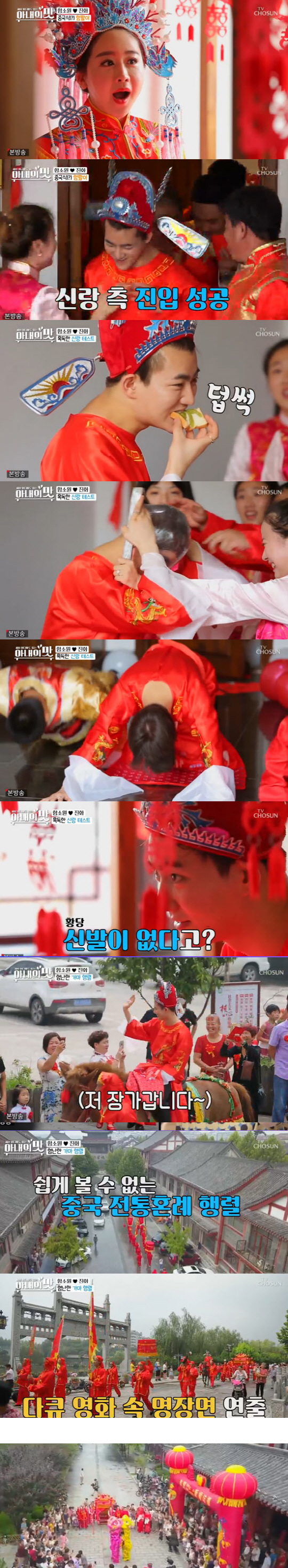 본격 혼례에 앞서 신랑테스트가 펼쳐졌다. 신랑이 혹독한 과정을 거치면 신부가 합격을 선언하는 식.