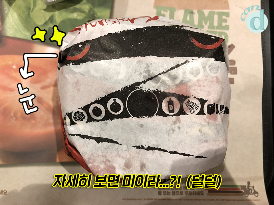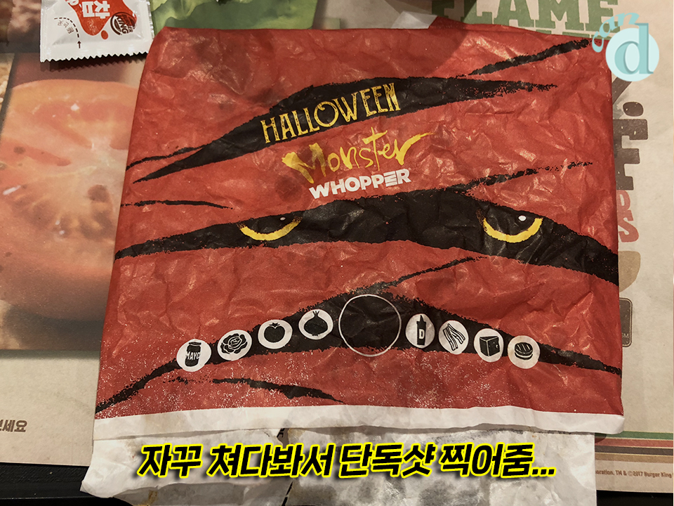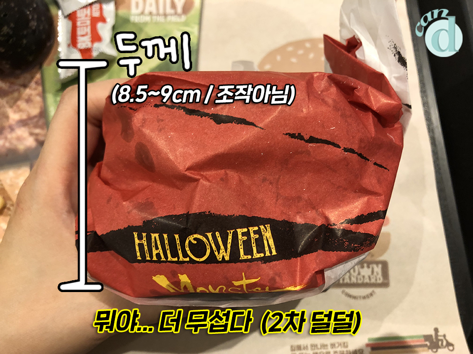 할로윈데이를 기념한 한정 메뉴라더니 포장지도 찰떡인데요 +_+ 사실 모르고 먹으면 조금 섬뜩할 듯 합니다.