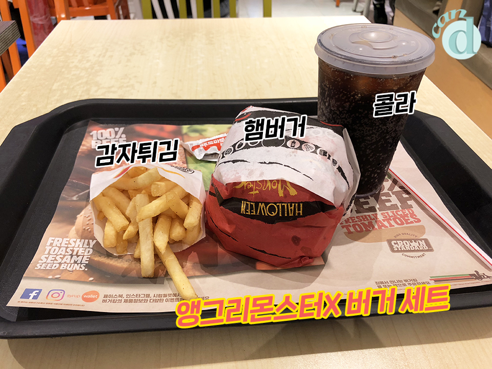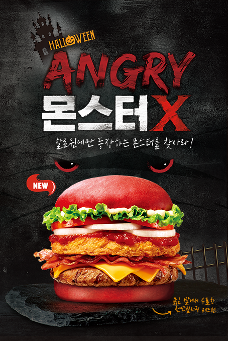 무려 10월 5일~31일까지 한정 판매한다는 할로윈 기념 메뉴 ‘앵그리몬스터X’ 버거였는데요.