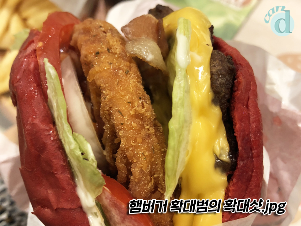 영롱한 햄버거의 자태를 확대해서 찍어봤는데요.