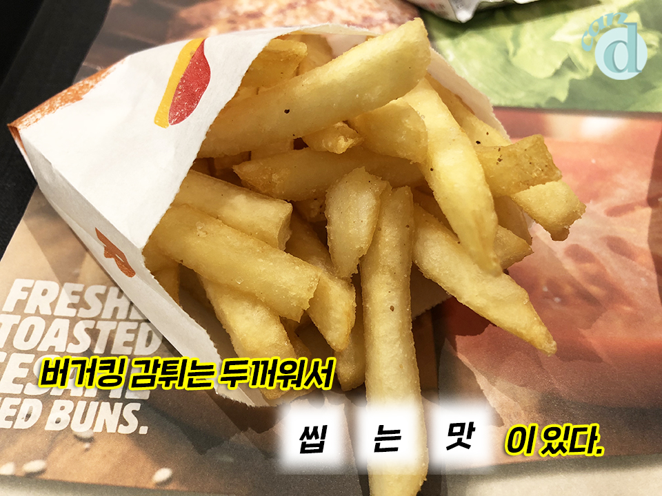 버거킹 감튀는 두껍기로 유명하죠? 식기 전에 일단 하나 맛봅니다.