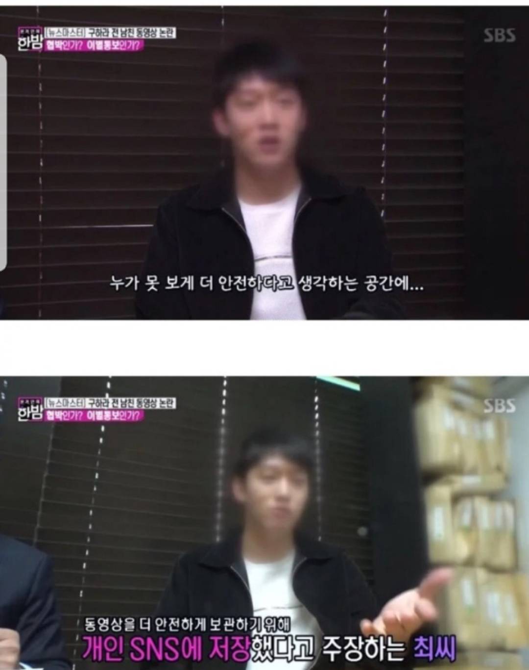 최 씨는 지난 9일 방송된 SBS-TV ‘본격 연예 한밤’에 출연했습니다. 영상 협박 논란에 대해 인터뷰에 나섰는데요. 그는 “(그때의 상황을) 안타깝게 생각해서 말을 안 했던 거다"라고 말문을 열었습니다.