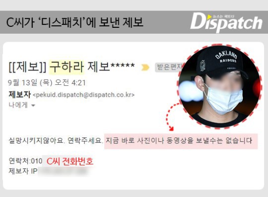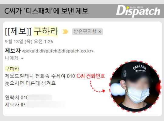 화가 나 ‘디스패치’에 2차례에 걸쳐 제보 메일을 보냈지만, 실제로 제보하려고 했던 것은 아니라는 것.