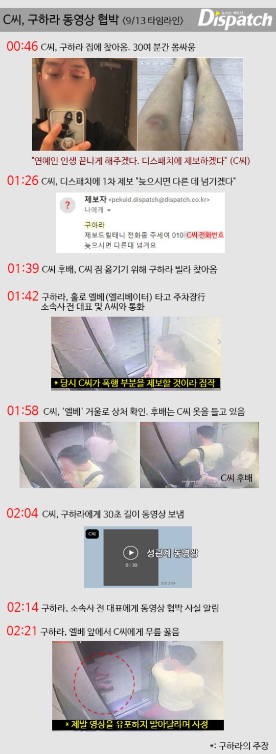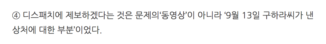 ‘디스패치’ 제보에 대해서도 앞선 주장과는 다른 의견을 내세웠습니다. 최 씨 측 변호사는 앞서 보도자료를 통해 “디스패치에 제보하겠다는 것은 문제의‘동영상’이 아니라 ‘9월 13일 구하라 씨가 낸 상처에 대한 부분’이었다"라고 전했었죠.