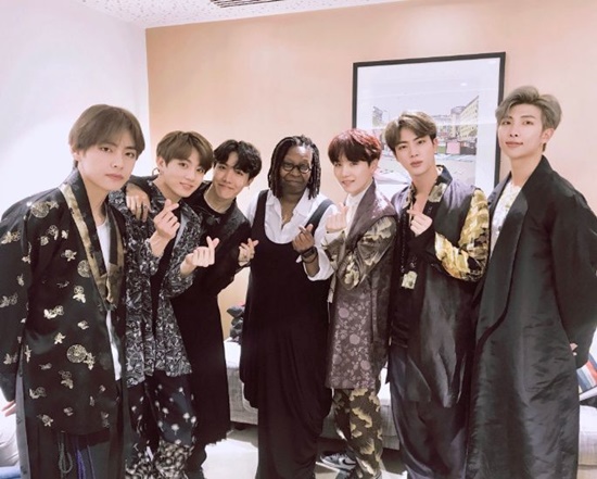이날 지민을 제외한 6명의 멤버가 '더 그레이엄 노튼쇼' 녹화를 진행했다. 세계적인 배우 우피 골드버그도 출연, 함께 기념사진을 찍기도 했다.