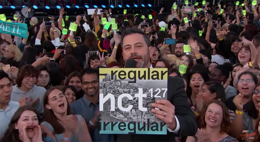 "기다리고 기다리던 무대입니다. NCT127 새 앨범 'NCT #127 레귤러-이레귤러'로 찾아왔는데요. 신곡 '레귤러' 감상하시죠!" (지미 키멜)