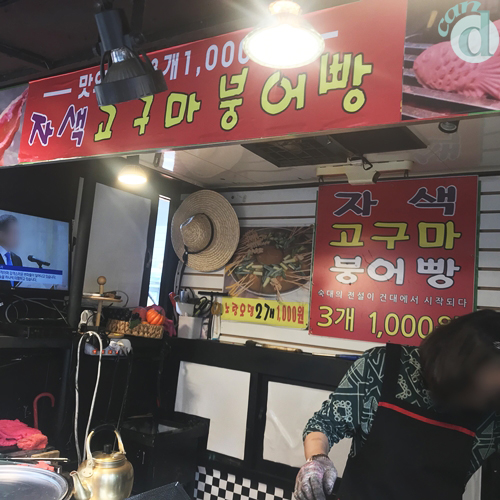 자색 고구마 붕어빵의 가격은 3개 1,000원.