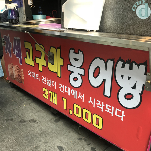 이 붕어빵을 맛보려면 건국대학교 먹거리 골목으로 나가야 합니다.