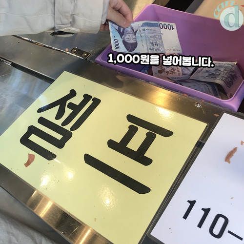 주인 아주머니: 앞 통에 돈 넣어주세요~