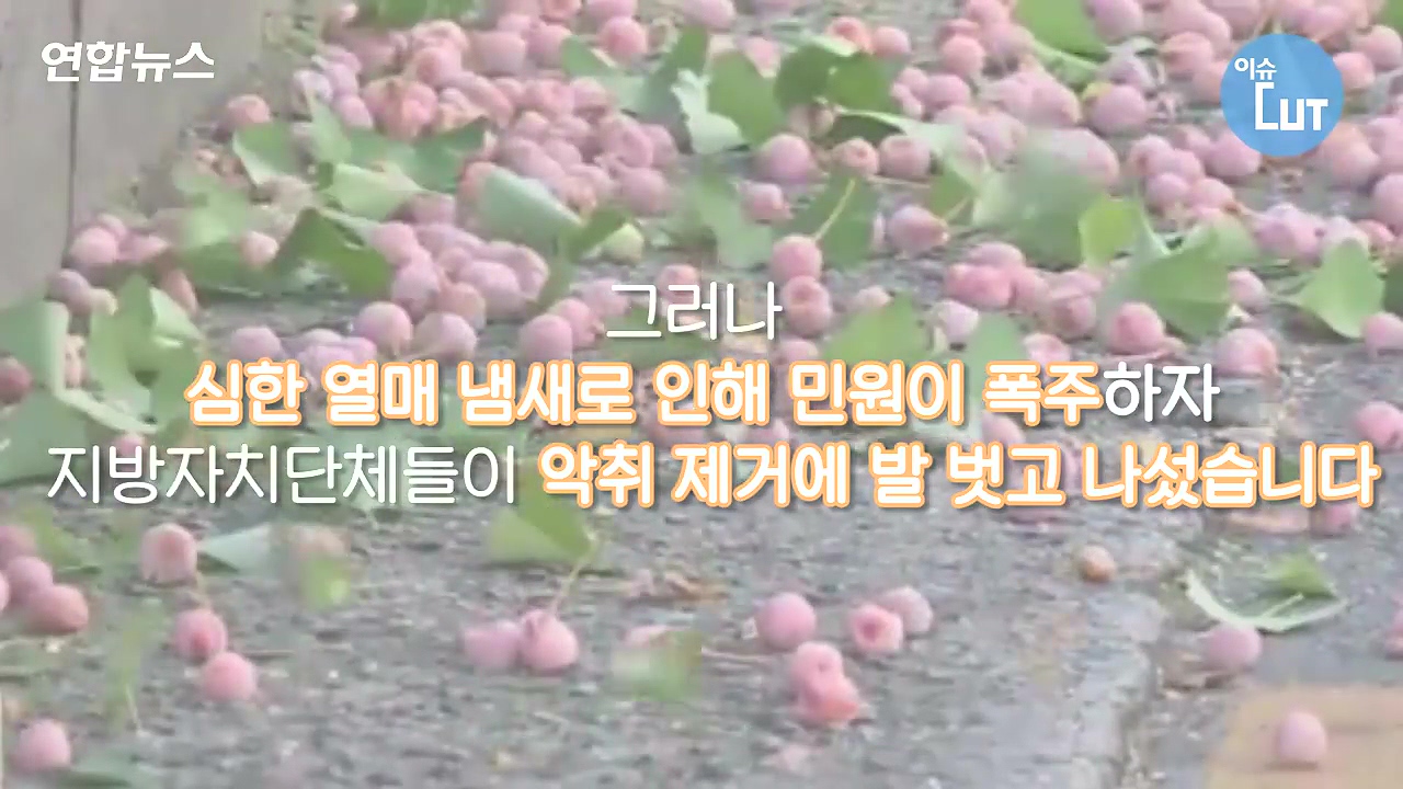 그러나 심한 열매 냄새로 인해 민원이 폭주하자 지방자치단체들이 악취 제거에 발 벗고 나섰습니다. 열매가 낙과하기 전 각종 장비를 동원해서 열매를 처리하거나 조기에 그물망을 설치하는데요. 은행나무 꽃이 필 때쯤 결실억제제를 뿌려 수정을 막거나. 아예 열매를 맺지 않는 수나무를 심기도 합니다.