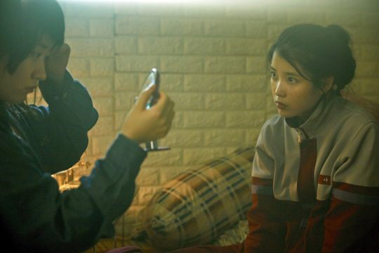 먼저, 아이유는 체육복을 입고 있었다. 묶음 머리로 캐주얼한 패션을 완성했다. 다른 장면에서는 와인잔을 든 채 생각에 빠졌다. 상반된 분위기가 느껴졌다.