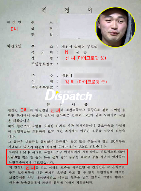'디스패치' 보도 이후, 피해 제보가 쏟아졌다. 그 중, E씨가 경찰서에 제출한 '진정서'는 '마이크로닷'의 주장(사실무근)과 배치되는 유의미한 증거였다. 진정서 원문을 그대로 옮긴다.