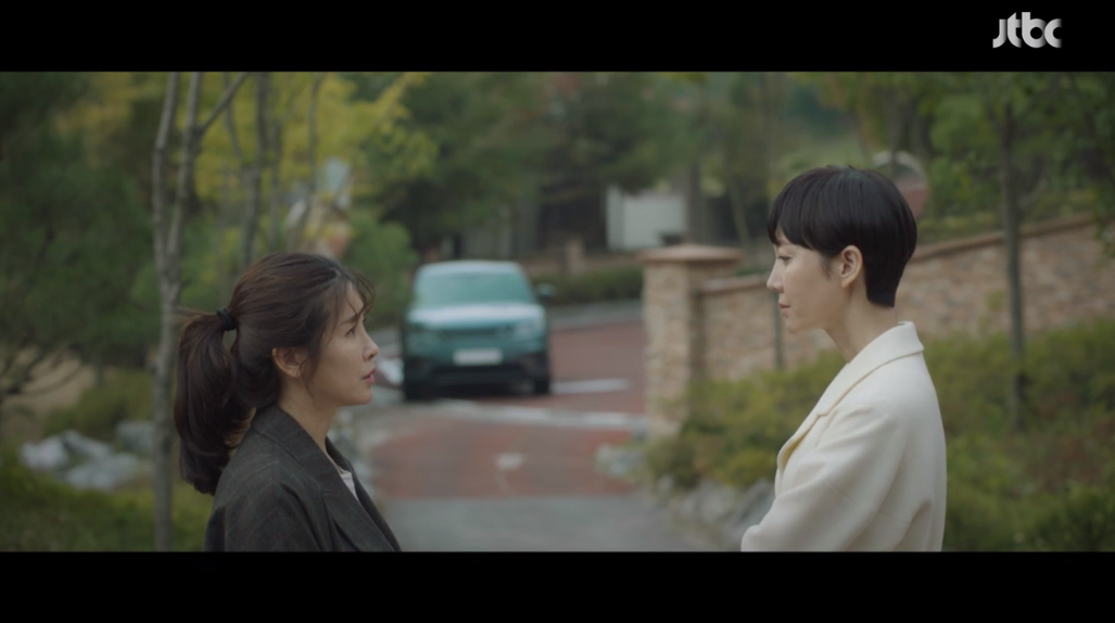 30일 방송된 JTBC 금토드라마 '스카이 캐슬(SKY 캐슬)'(극본 유현미, 연출 조현탁)에서는 한서진(염정아 분)이 과거 곽미향이었단 사실을 알아채는 이수임(이태란 분) 모습이 그려졌다.