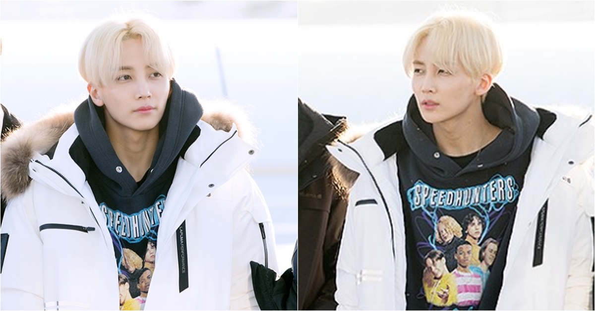 ‘세븐틴’ 정한은 이날 화이트 패딩에 청바지를 매치했다. 우월한 비주얼이 돋보였다.