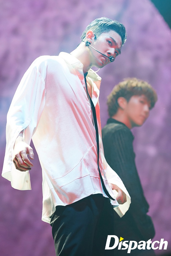 백호는 솔로곡 '필스'로 팬들을 멘붕에 빠트렸다. 역대급 노출 퍼포먼스를 선보였기 때문. 노래 중간 화이트 셔츠를 벗어던졌다. 그 순간 팬들의 폭발적인 함성이 쏟아졌다.