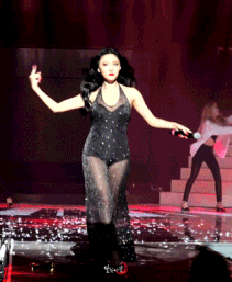 화사는 광택이 있는 초밀착 의상을 입었습니다. 하의 실종 패션으로 관객들을 깜짝 놀라게 했는데요.