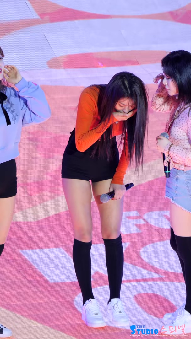 그러나 곧바로 고개를 숙이고 헛구역질을 이어갔습니다. 멤버들은 양 옆으로 그녀를 부축한 채 무대 밖으로 나갔습니다.