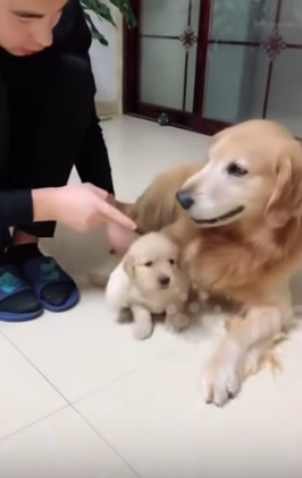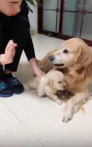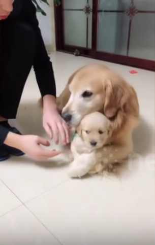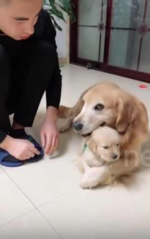 엄마 리트리버가 보호자에게 혼나는 자신의 새끼를 온몸으로 보호했습니다. 새끼를 껴안으며 보호자로부터 떨어뜨려 놔 감동을 주고 있는데요.