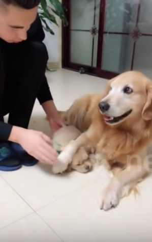 엄마 리트리버의 감동적인 장면, 영상으로 확인해볼까요?