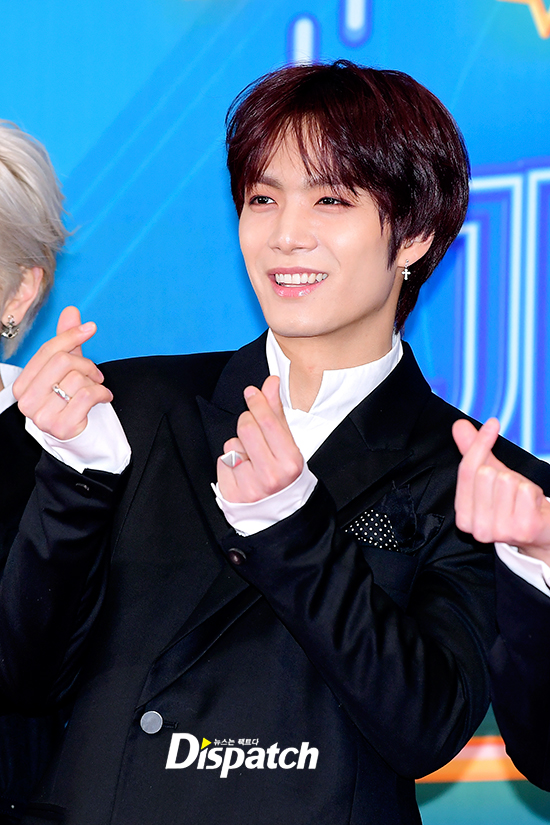 '뉴이스트W'는 이날 블랙 수트 패션으로 완벽한 비주얼을 뽐냈다. 애교 넘치는 포즈로 시선을 사로잡았다.