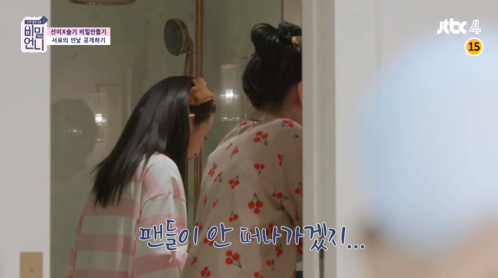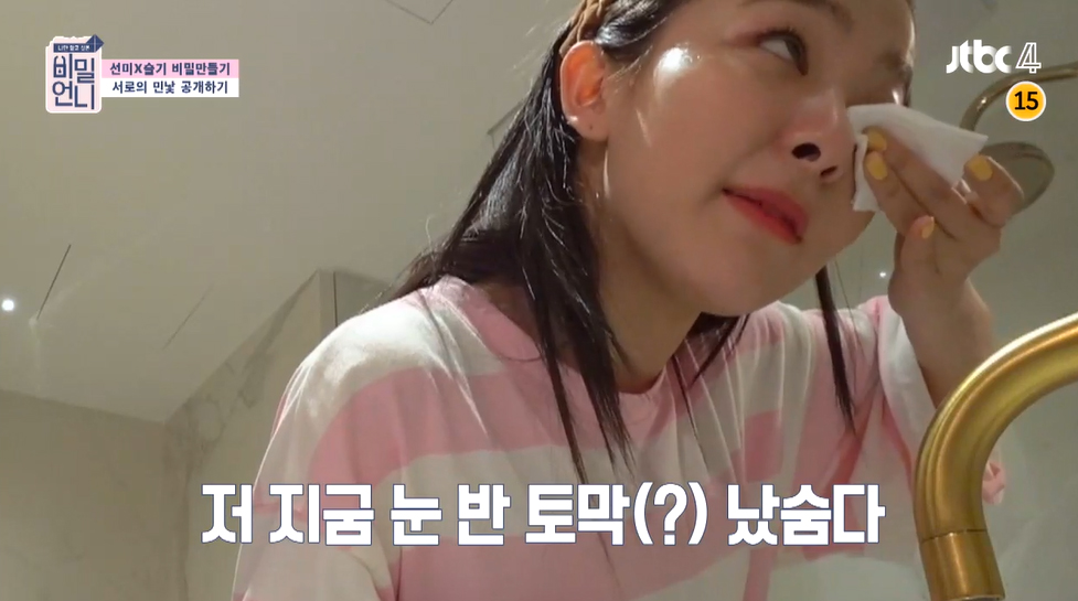 슬기는 민낯을 보고 팬들이 실망할까 봐 걱정했습니다. 눈 화장을 지우다가 "팬들이 안 떠나가겠지?"라며 두려움을 표출했는데요.