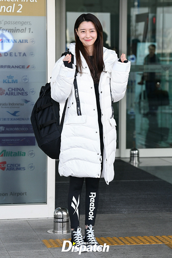 나라는 이날 블랙 레깅스에 스니커즈, 화이트 롱패딩을 매치해 캐주얼한 패션을 완성했다. 작은 얼굴과 완벽한 비율이 돋보였다.