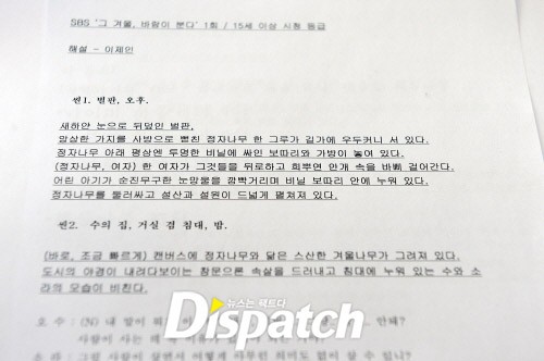 그런 면에서 '그 겨울'은 어려운 드라마란다. 캐릭터가 정제돼 있기 때문이다. 조 작가는 "송혜교는 차갑고 건조한 캐릭터로 나온다. 연기도 굉장히 절제됐다. 화면해설에 그런 느낌을 살려야 해 어렵다"면서 "게다가 시각장애 증세도 보여줘야 한다. 쉽지 않은 드라마"라고 했다.