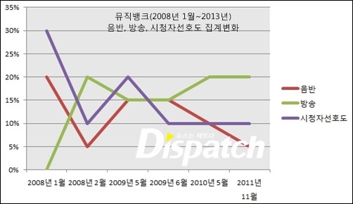 비단 '뮤직뱅크'에 국한된 문제는 아니다. '인기가요'와 '음악중심'의 순위제도 공정성을 담보하기 힘들다는 평가다. 방송점수도 문제지만 특정 기획사나 팬덤에 유리한 방식이 적용돼 불공정 논란이 불거질 수 있다는 지적이다.