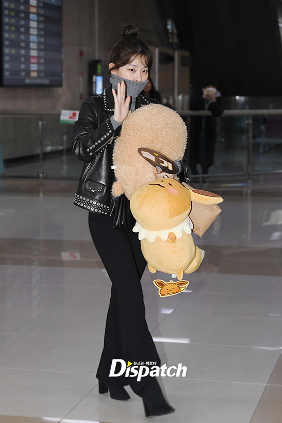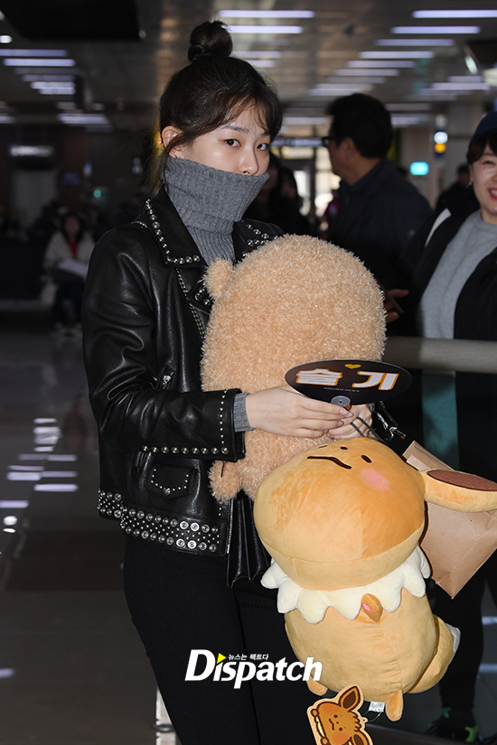 '레드벨벳' 슬기는 팬들에게 선물받은 인형을 한가득 안고 등장했다.