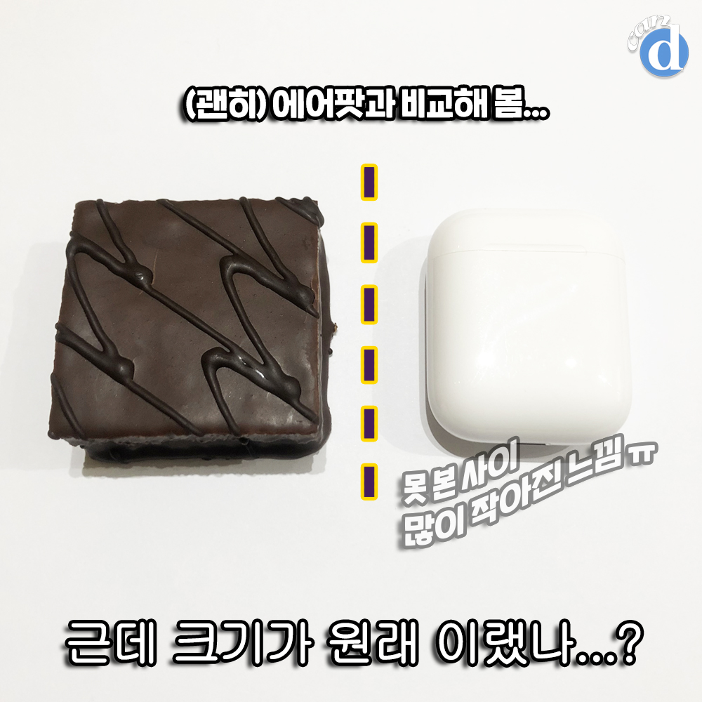 겉에는 우리에게 익숙한 초코가 코팅돼 있습니다. 근데 뭔가 기분탓인가 왜이리 작아진 것 같죠?