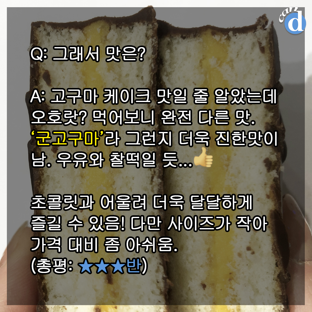 무려 그냥 고구마도 아니고 군.고.구.마.맛! 박스 당 가격은 4,000원입니다.