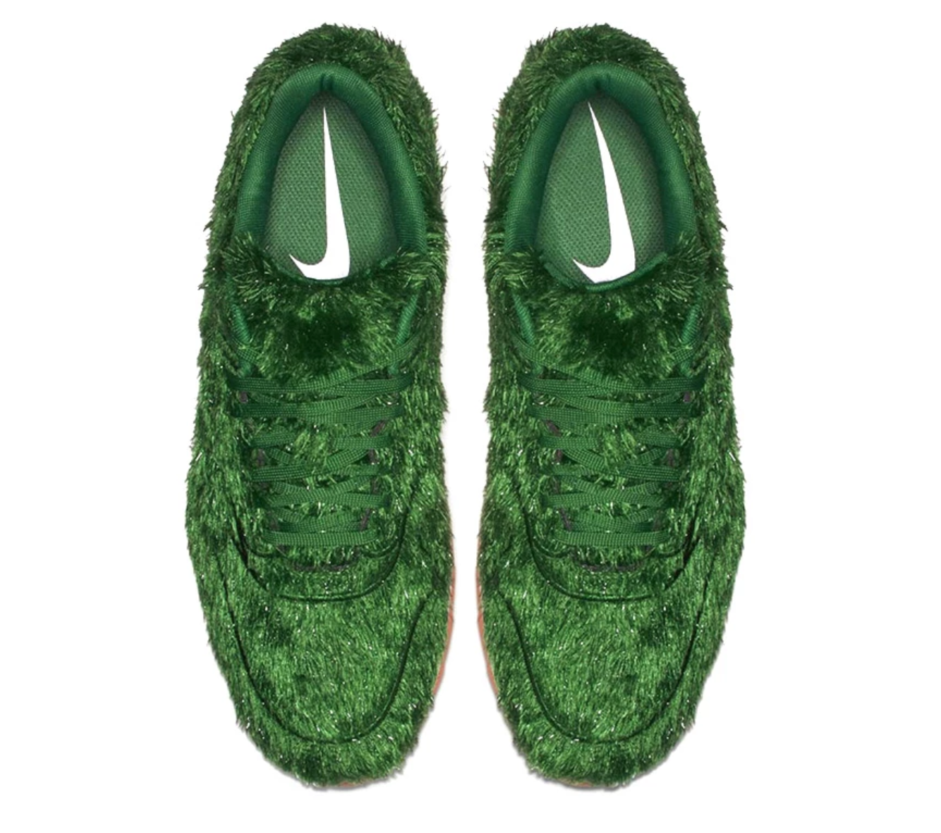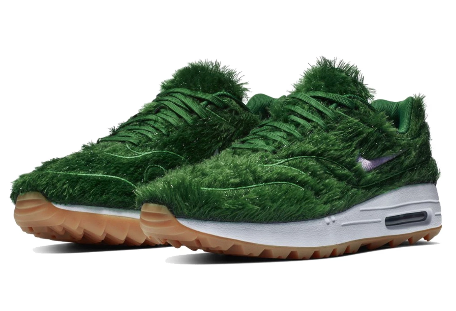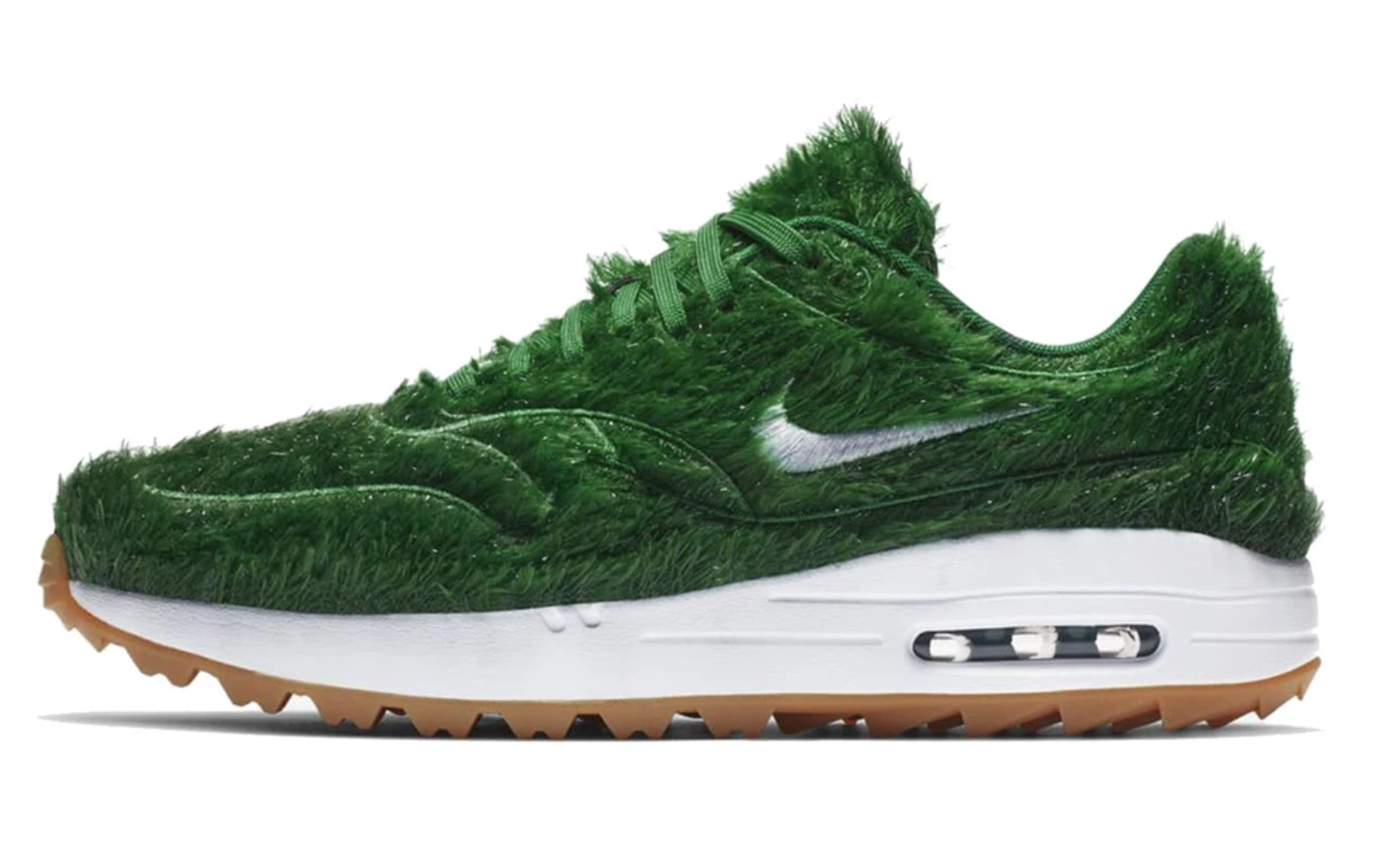 이 운동화의 정식 명칭은 '나이키 에어맥스1 골프 잔디'입니다. 이름 그대로 녹색 잔디를 떠오르게 하는 어퍼가 특징이죠.