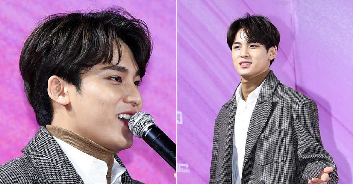 '세븐틴' 민규는 화이트 셔츠와 블랙 팬츠, 체크 코트로 남다른 패션감각을 드러냈다.