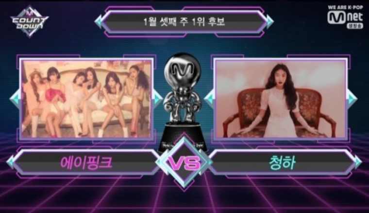 17일 방송된 Mnet '엠카운트다운'에서는 에이핑크의 '%%(응응)'과 청하의 '벌써 12시'가 1위 후보에 올랐다.