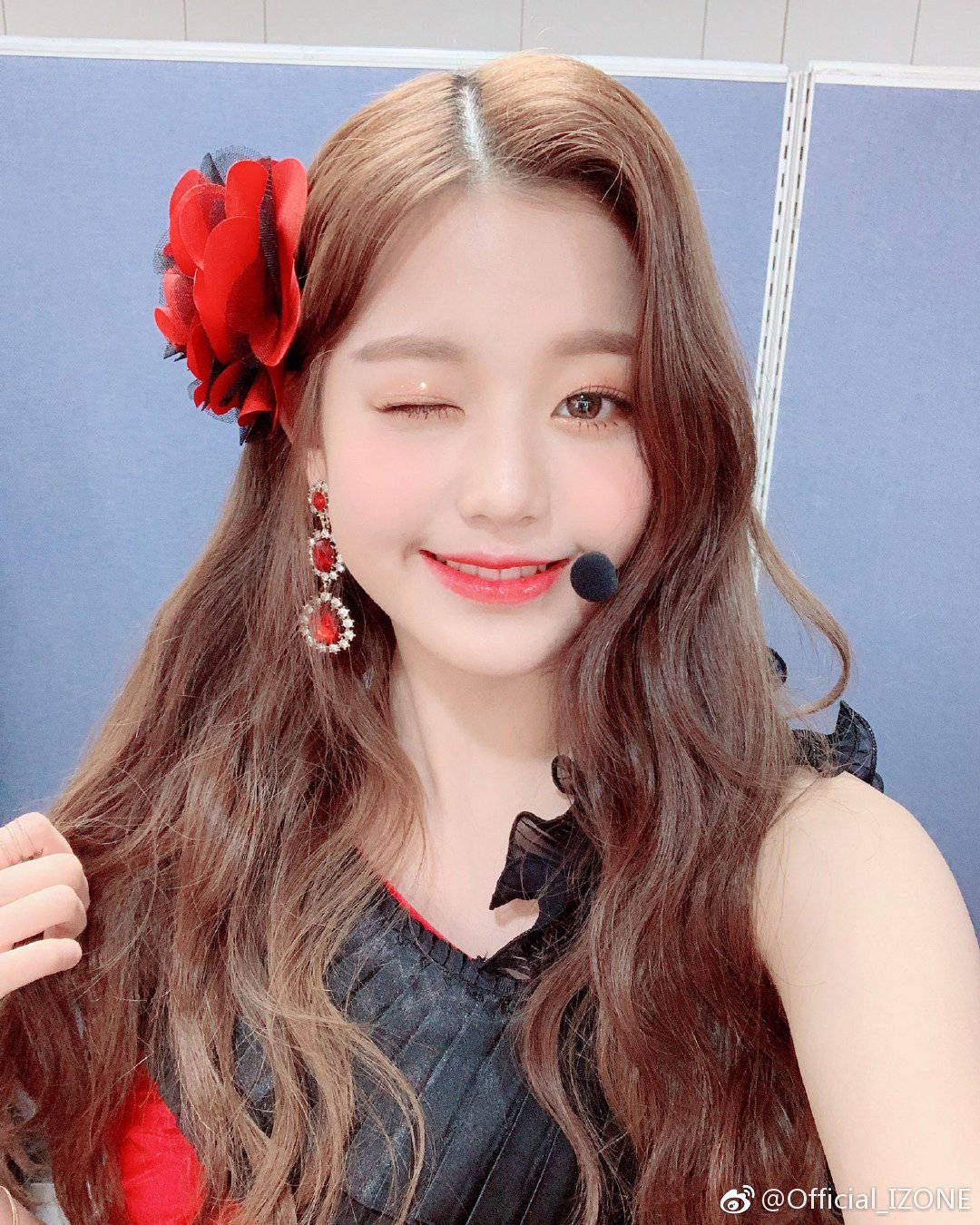 장원영은 26일 아이즈원 공식 웨이보에 셀카 3장을 공개했습니다. 사진에는 무대 의상을 착용한 장원영의 모습이 담겼죠.