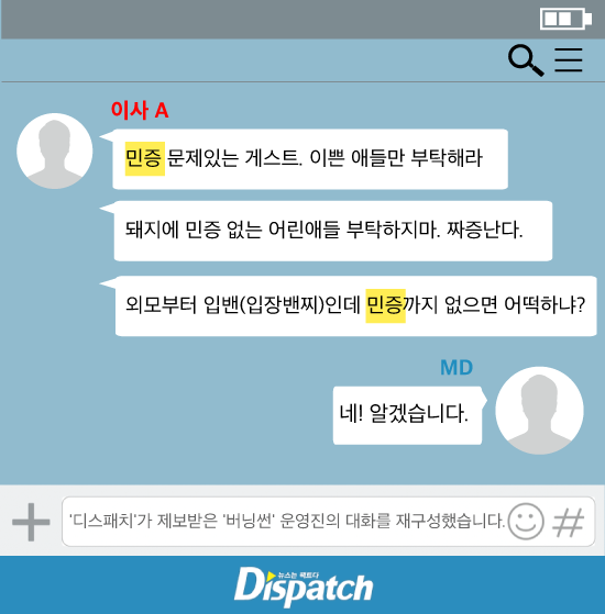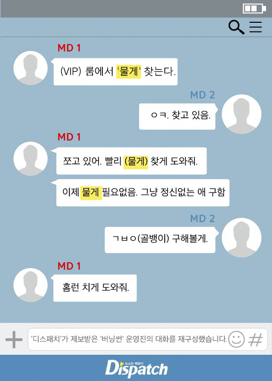 다음은, '디스패치'가 제보받은 '버닝썬' 운영진의 대화다. 재구성했다.