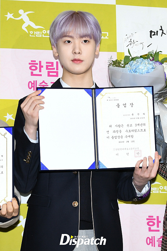'아스트로' 윤산하는 이날 멤버들의 축하를 받으며 빛나는 졸업장을 품에 안았다.
