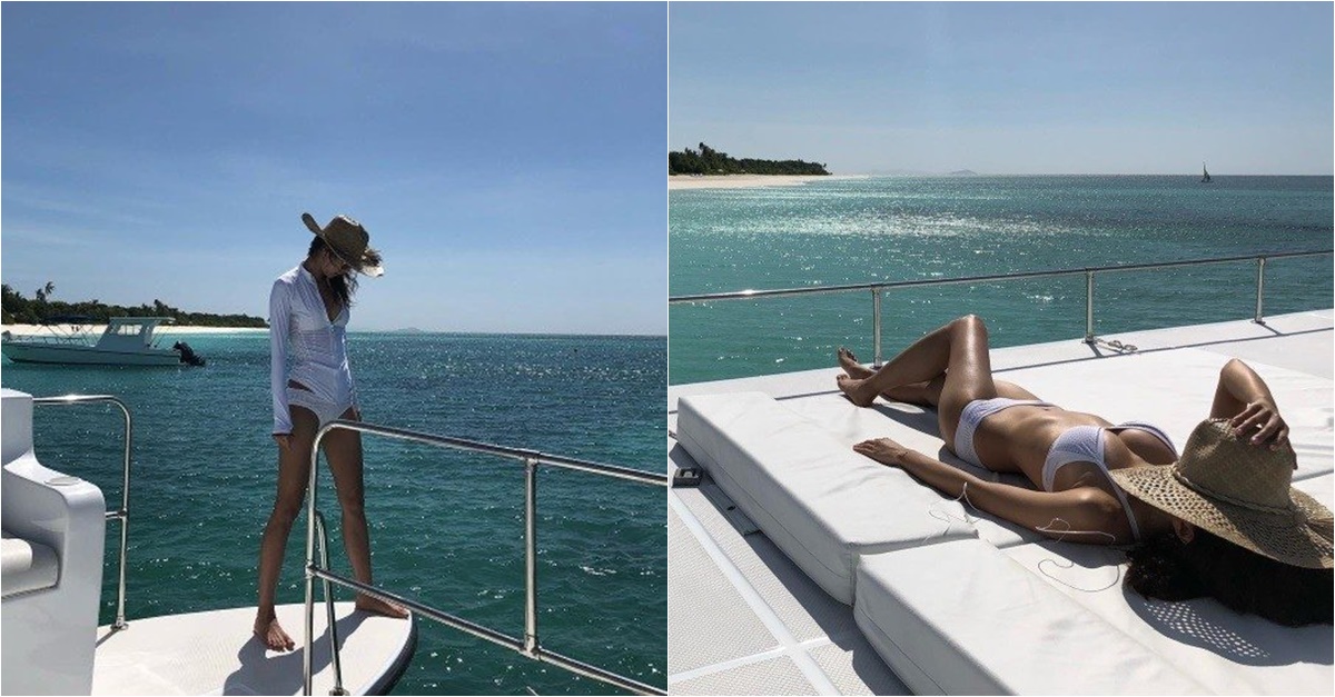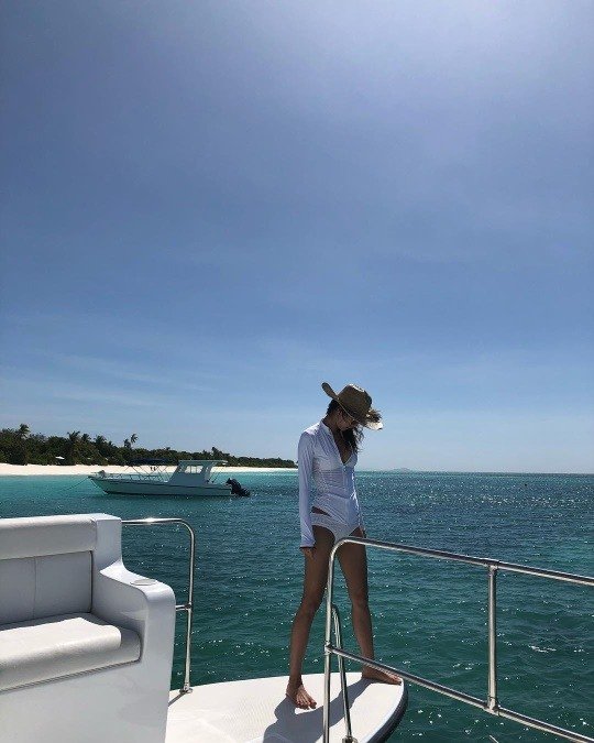 또 다른 사진 속 그녀는 아찔한 비키니 차림으로 요트 위에 누워 태닝을 하고 있는데요.