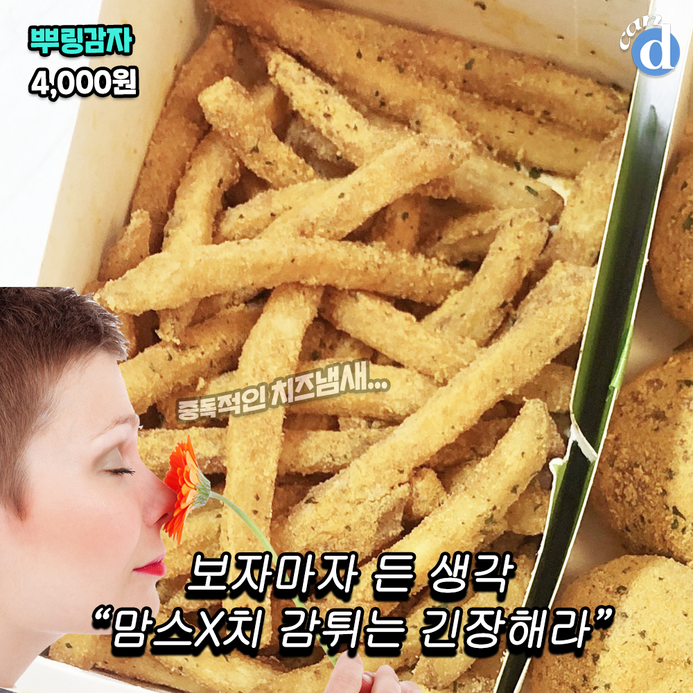 감튀에 치즈가루가 솔솔 뿌려진 뿌링감자! 의심할 것 없이 맛있었습니다.