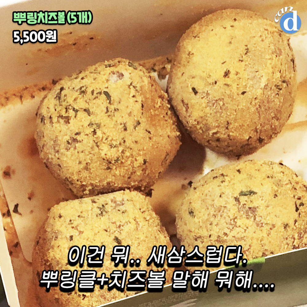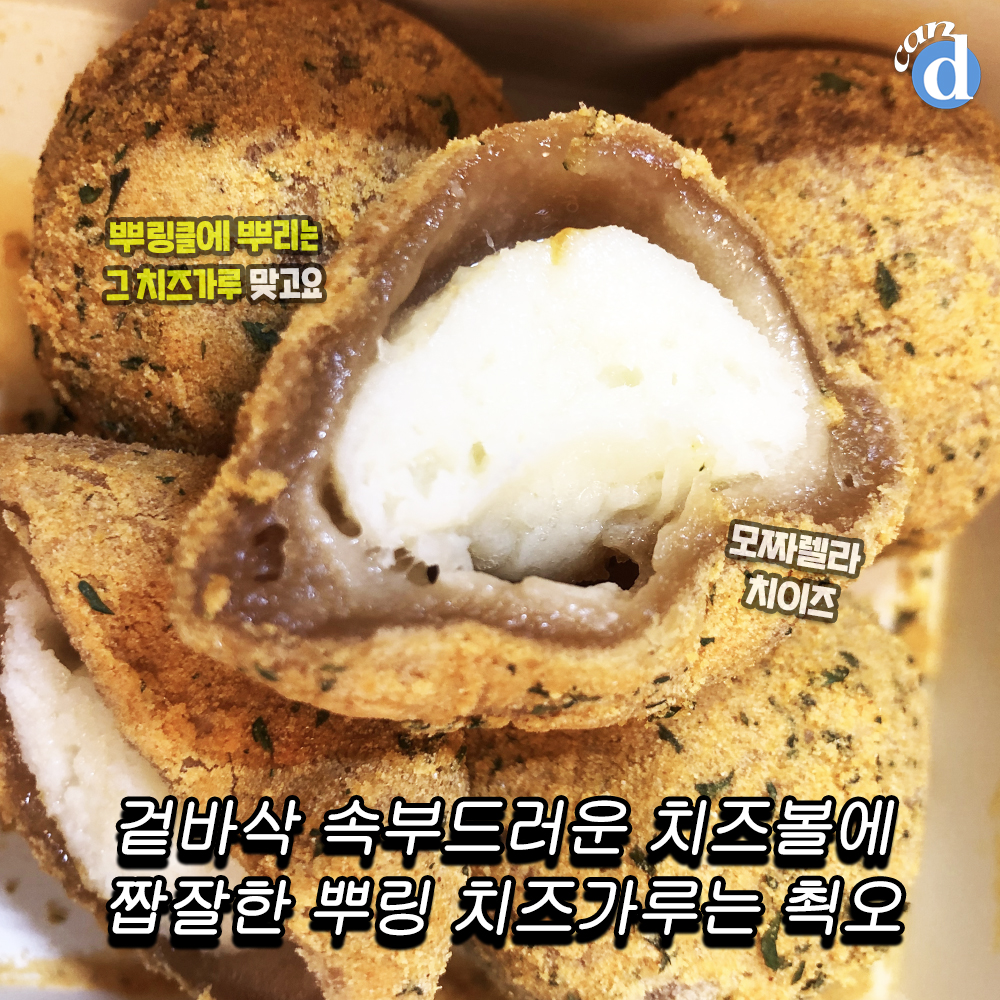 기존 치즈볼도 맛있는데 마약같은 뿌링 치즈가루와 함께라니 최고입니다. (ㅠㅠ)