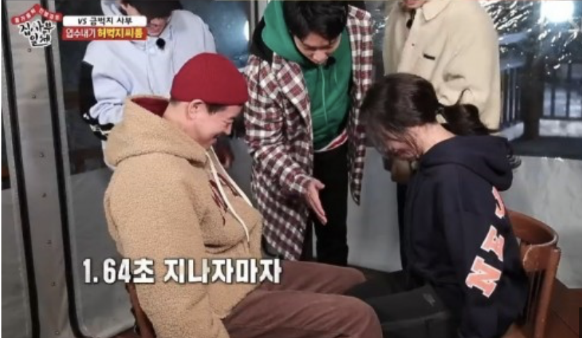 17일 방송된 SBS ‘집사부일체’에선 이상화가 출연해 제자들과 허벅지 씨름 대결을 벌였다. 이 대결의 벌칙은 얼음 계곡 입수다.