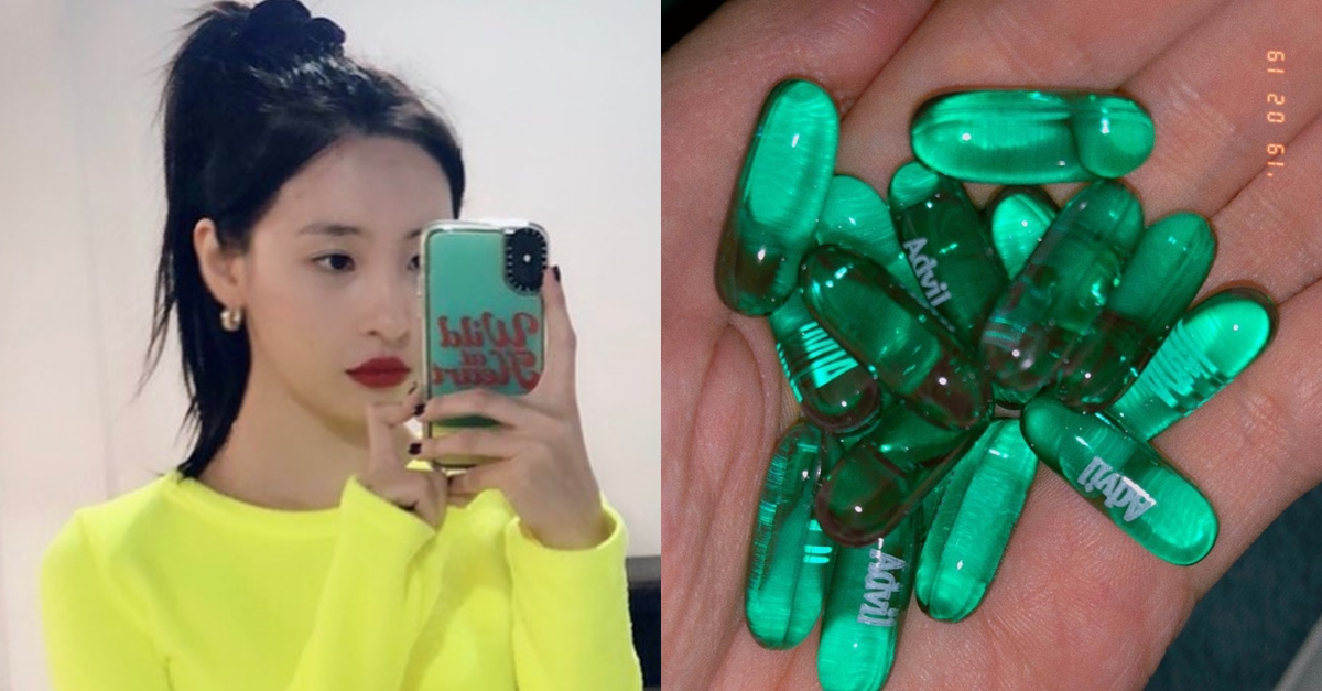 사진 속엔 선미의 것으로 추정되는 손바닥 위에 초록색 알약이 가득한데요.