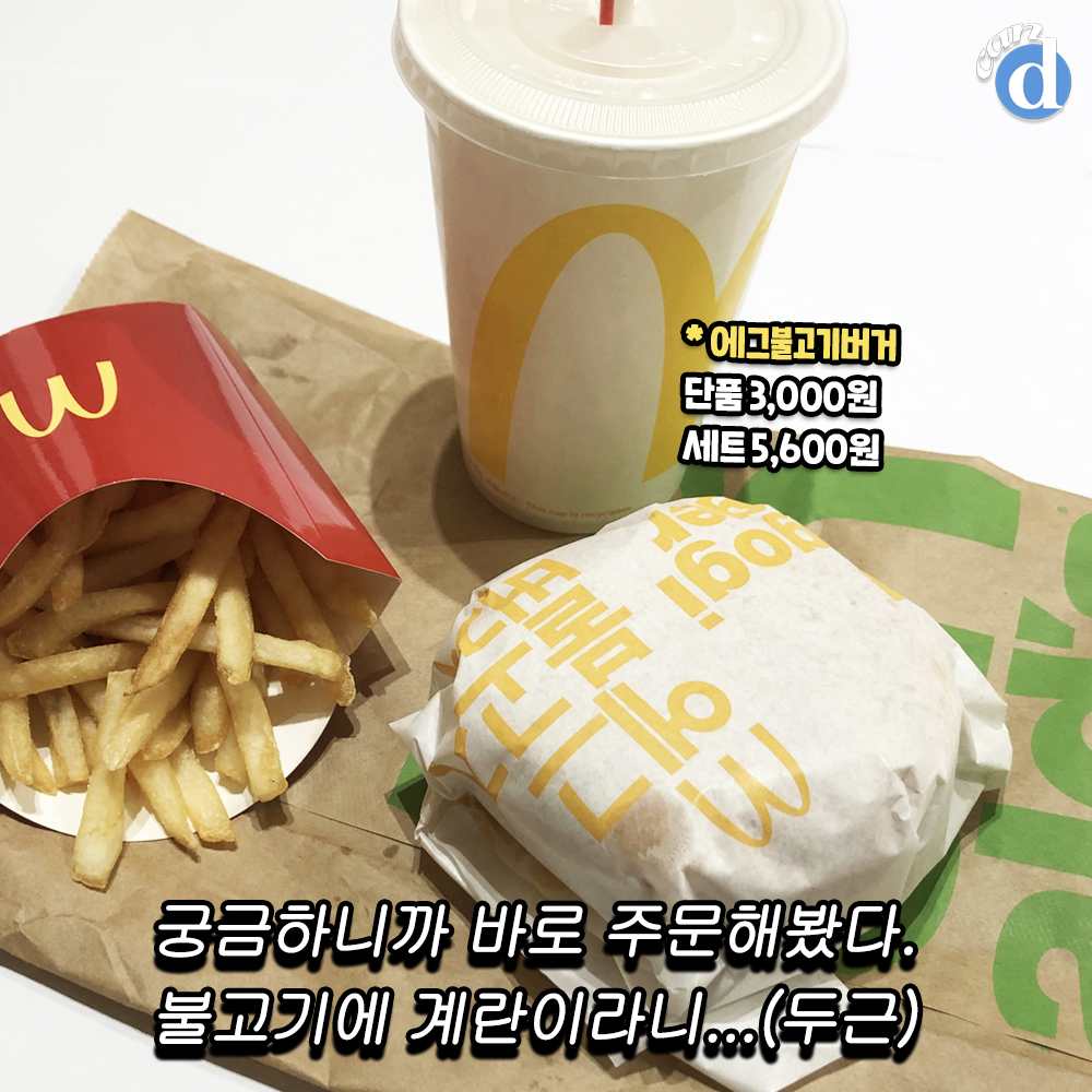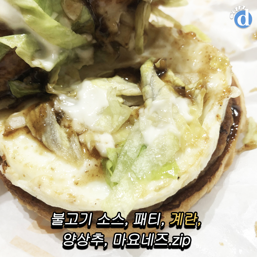 내용물은 불고기버거에 계란을 추가하고 마요네즈 소스가 더 추가됐다는 점.