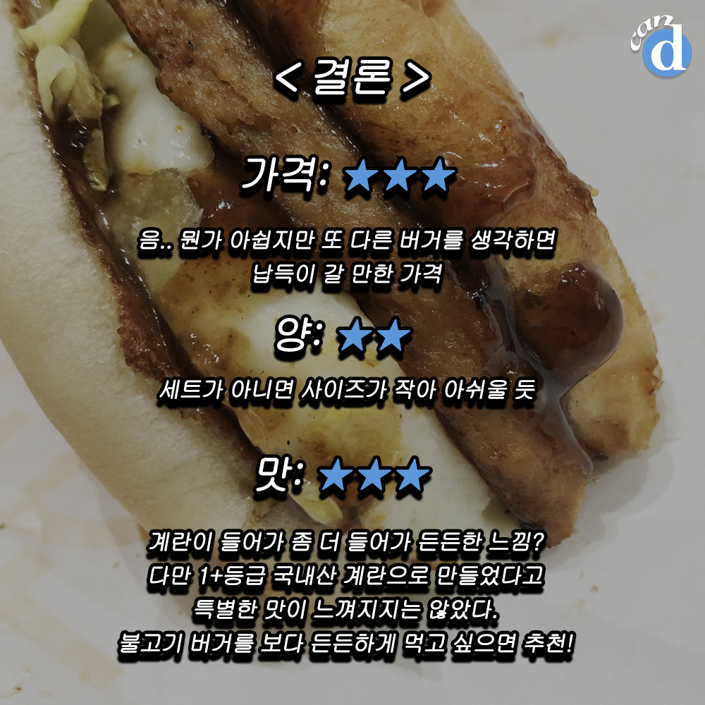불고기버거에 계란을 추가해서 먹는 맛에 가까웠네요.