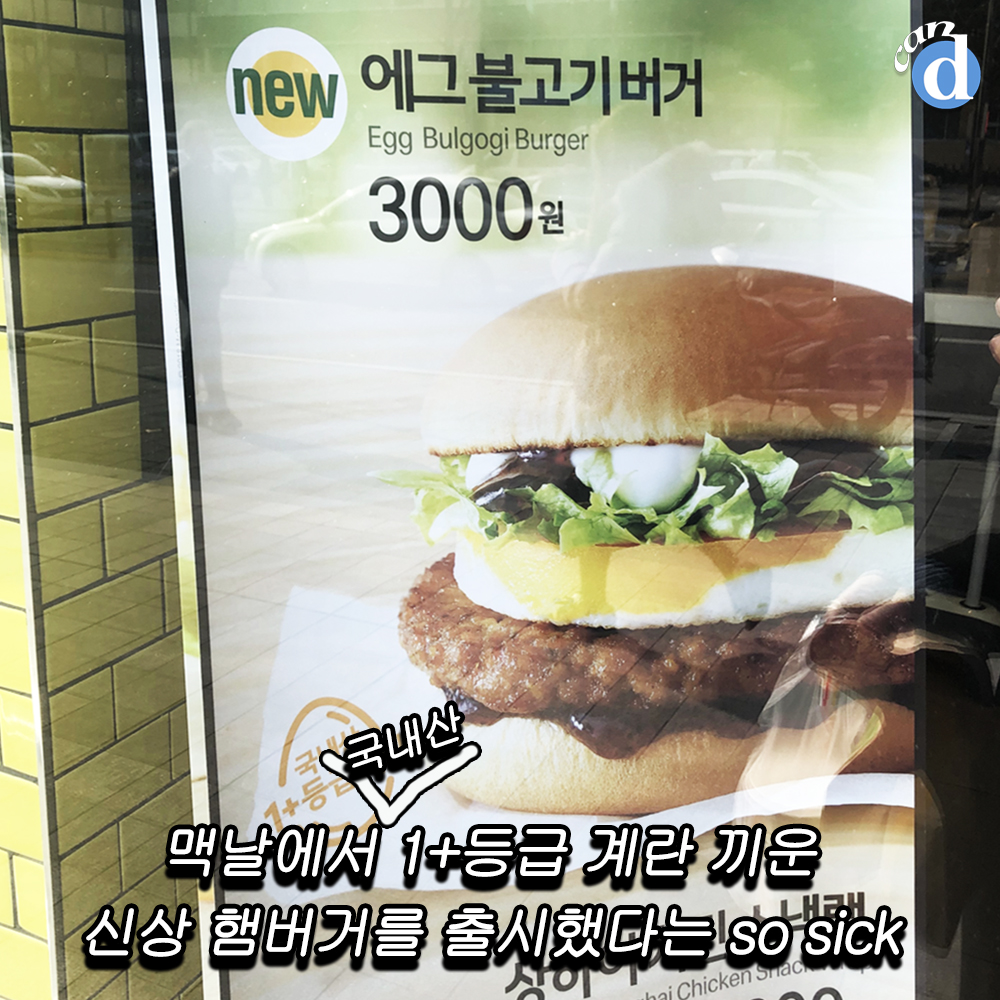 바로 계란이 추가된 불고기버거입니다. 국내산 1+등급 계란을 사용했다고... (솔깃)