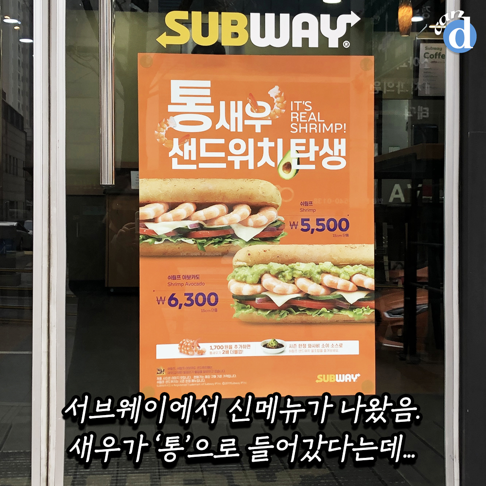 서브웨이에서 새우가 들어간 샌드위치 신메뉴를 출시했습니다.